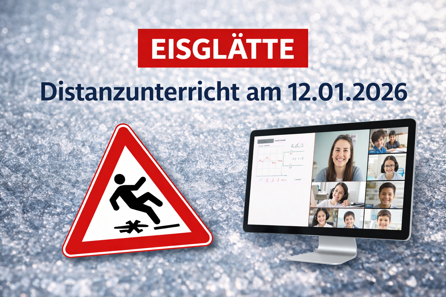 aufgrund der für morgen, Montag, den 12.01.2026, angekündigten Wetterlage mit möglicher Eisglätte möchten wir Sie über folgende Regelung informieren.