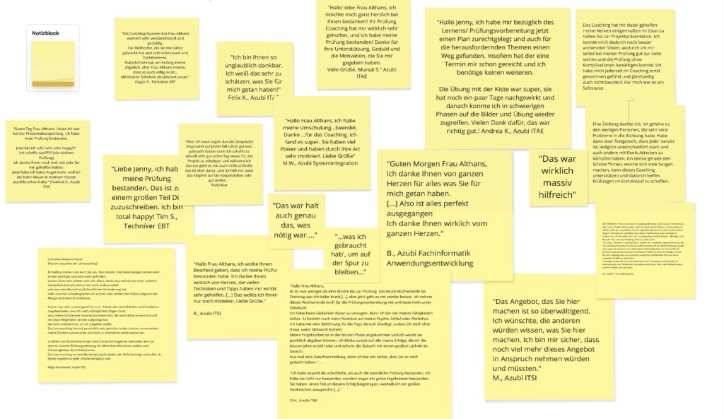 Es handelt sich um ein wissenschaftlich fundiertes und umfangreiches Coaching für die Bereiche Lernmanagement (wie und wann lerne ich?), Selbstregulation (wie gehe ich mit Stress und Druck um?) und Motivation (warum mach‘ ich das Ganze überhaupt und warum schiebe ich alles vor mir her?)